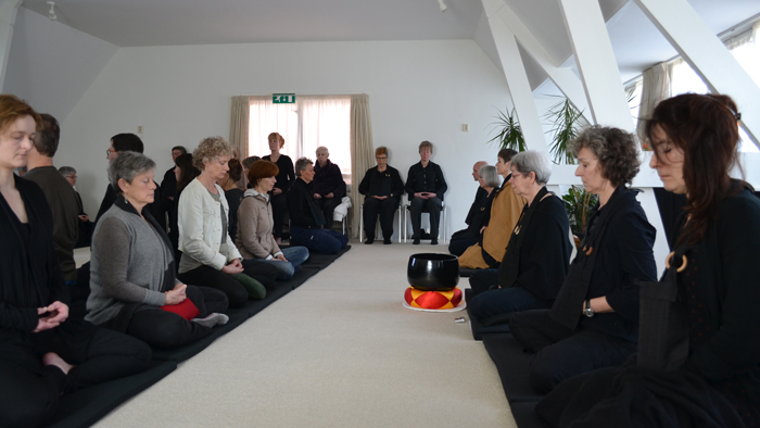 Ieder komt en gaat in stilte. Er is dus geen begeleiding met woorden. Twee periodes stille zitmeditatie (zazen) afgewisseld met langzame loopmeditatie (kinhin).